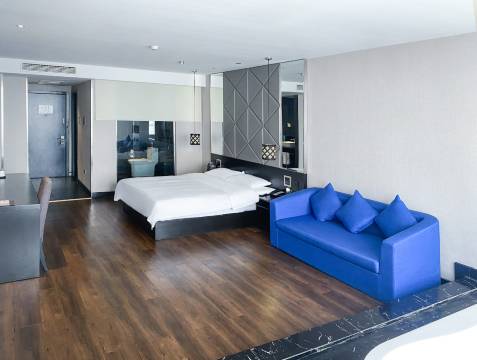 酒店拥有高级大床房、高级双床房、时尚榻榻米大床房、全景商务大床房等各类客房,房间整洁宽敞,温馨舒适;每间客房均配备高速上网、免费赠饮、液晶电视、办公用品等设施。经过一座城,寻觅一间房,消去您满身的疲劳,我们将以热情的服务,舒适的房间,期待您的到来。