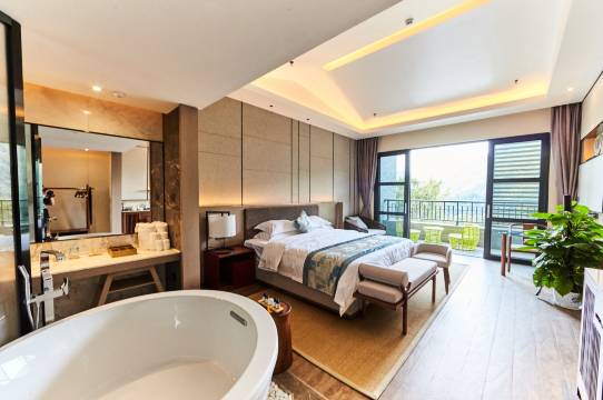 北纬25度的黄金生态带上,阳光、雨露恰到好处。每一间客房都独享无敌山景,体验至尊至贵。推开窗即视山如画屏,水似明镜,竹海清幽,宛如仙境,关上门即是兰香雅室,轻奢养生的休闲空间。