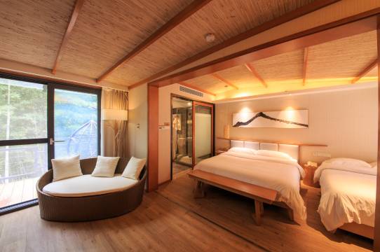 文化风格:春秋舍是丫山旅游度假区创意打造的竹林主题度假体验区。“春秋舍”,意寓“一日一春秋,三生三邂逅。”由14栋独立的竹林雅舍构成,青砖墙,木梁房,木塑回廊,室内古藤灯,毛竹椅等特色环保家居齐备,简洁奢华。每一间房都独享竹林山景,常有白鹇出没,生态优雅。