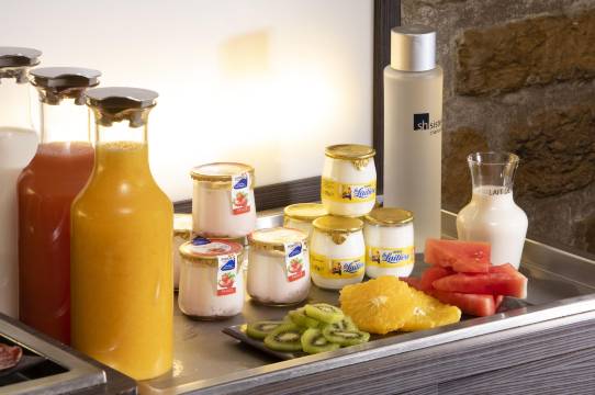 酒店对客房的装饰十分考究,每间设施齐全的客房都配备有熨衣设备、房内保险箱和空调。浴室内提供浴缸和吹风机,让您感受到宾至如归的享受。在余暇时间,可以选择去酒店的酒吧喝上一杯饮料,驱走所有的疲惫。贴心的送餐服务可以满足那些喜欢在私人场合进餐的旅客。除了这些酒店内提供的餐饮服务,离酒店不远处Pierre Gagnaire(西餐)的Bretagne Homard Bleu, Raisins de Mer、Le Cinq(西餐)的Pamplemousse Mille feuille以及Le Diane(西餐)的美食,也是来这座城市出行不容错过的美食之选。