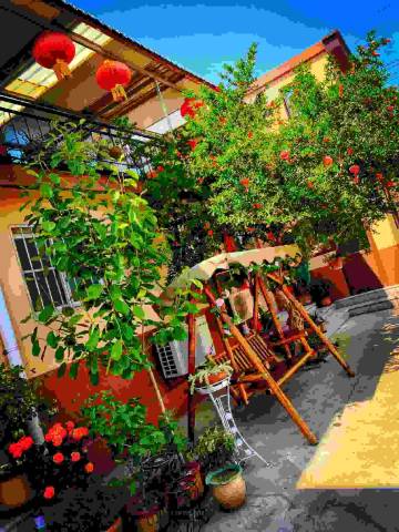 出了院子,门口有一石榴树和秋千。前面的石榴藤下可以吃饭,纳凉,时不时和咱家小院的人闲聊上几句。认识了很温柔的阿姨,可爱的房东姐姐,还有有趣的同龄人。