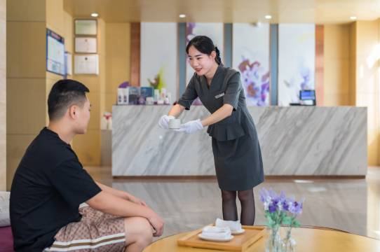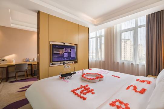 服务很棒呀,前台小姐姐非常热情,我说想换个房型就给我免费升了一级,升级成了行政套房,而且离店时间也延长到了下午2点,下次还来!