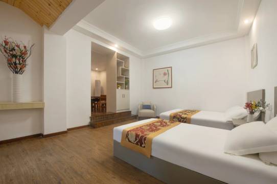 老板很热情,告诉路线如何到店,如何出行。床软软的消除了很多疲惫,睡着很舒服,空调也暖暖的,即使在山上回到屋内也不会冷啦,性价比高,体验很好,离正街很近,吃饭游玩坐观光车都很方便,推荐~