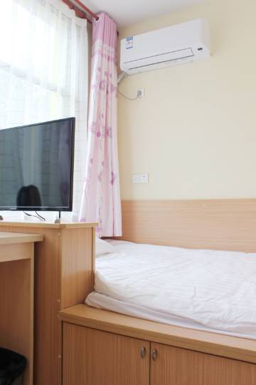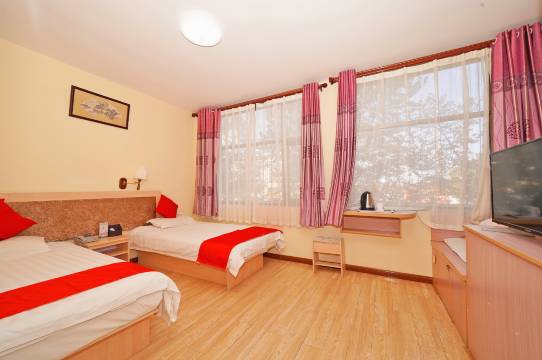 宾馆装修雅致,布局简约,设施设备完善;更有精心设计飘窗,可俯看窗外景色。床上用品精选绵柔面料,愿您在此能睡个好觉,做个好梦。工作人员服务亲切、热情,您可随时问询信息。