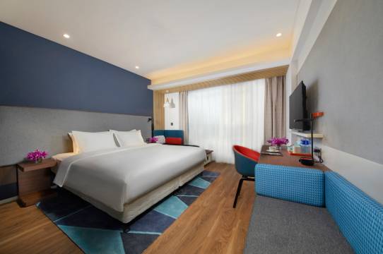 酒店前台服务热情周到,房间温馨舒适干净,早餐品种丰富,美味可口。酒店附近餐厅选择面宽,交通便利,到高铁只有一个起步费而已。希望再次入住智选。