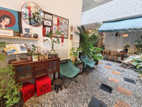民宿环境真的很舒服。绿植很多,简直就像个小花园。晚上开了灯之后,整个院子显得格外温馨浪漫,特别适合拍照打卡。院子里的桌椅摆设也很贴心,喝茶聊天,看书发呆,都非常安逸。