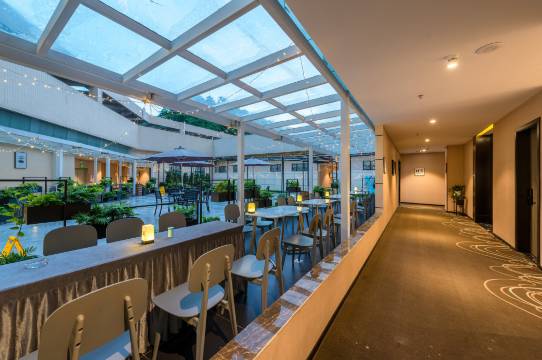 酒店往东南为繁华商业步行街-西门町往北行约3分钟,就有椰林海鲜6号码头,以及新濠天地KTV,酒店周边为餐饮聚集地。