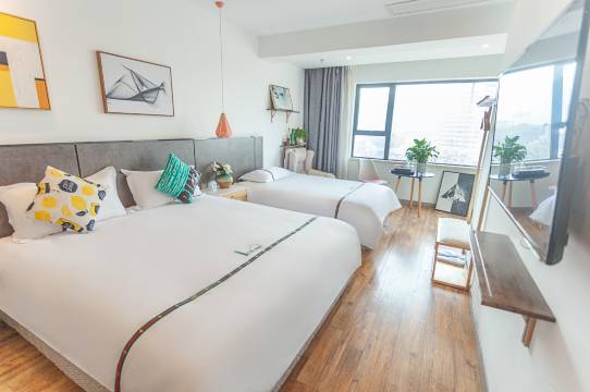 房间宽敞明亮,装修很有格调,床品柔软亲肤,浴室干湿分离