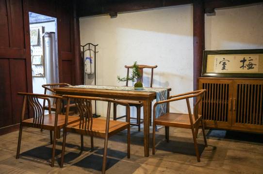 沿着鹅卵石和青石板铺成的道路拜访村里的这些古老宅子,感受由石窗、雕花、水榭、马头墙等组成的灰墙黑瓦的传统建筑美学。 来到溪里方村,你会发现很多民居门前都贴着“盆景示范户”的标牌,村民们的庭院里摆着各式各样的盆景,这也正是溪里方村的名片之一,给宁静的溪里方,更添上一层苍古意趣。溪里方“九房三堂”之一的“仁三房”改建而成的,在“修旧如旧”的设计理念下尽可能保留了古建筑原始面貌和韵味。