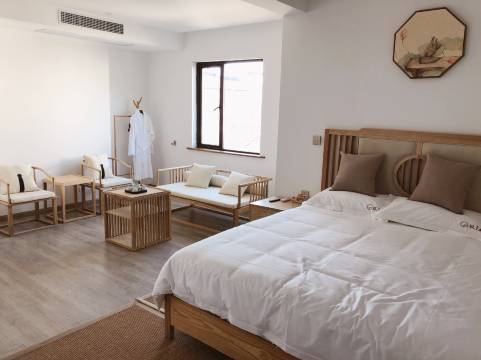 民宿主人是一位民间古玩收藏杂家,蛰伏了近一年的时间, 把自家的明清老宅进行了修复与改建,还原了琴房与书房的样貌的同时,还另设有古玩展厅,在院内的亭子里,沏一壶清茶,听一嗓子苏州评弹,倒是惬意;走过天井,绕过长廊,紧紧挨在边上的则是一栋轻奢的现代住宅建筑,其中共设九间客房,分别以釉色命名 (天青,霁蓝,月白,豆青,霁红,青花,紫金,鹅黄,斗彩)每个房间的活动空间都做了比例安排。您住得舒适惬意,就是对我们苏州玖熹民宿的褒奖!