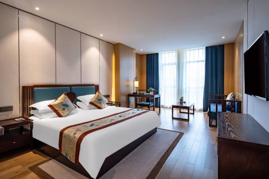 这是一家由宁波广源控股集团倾心打造,集住宿、餐饮、会议、休闲、娱乐为一体的高端文旅酒店,拥有660个充足停车位。酒店精心打造豪华客房及套房百余间,配备了智慧客房、影音房及亲子房等特色房型,视野广阔,设施设备齐全。