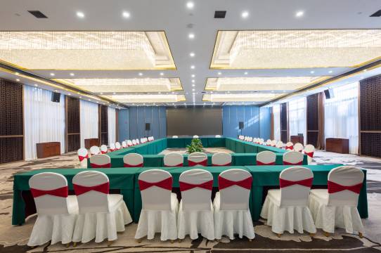 酒店另有豪华中式餐饮包厢、极具假日风情的自助餐厅、创意茶餐厅及大小多功能厅,共计餐位500余个。酒店28层配备了室内高尔夫、射击场及多功能健身中心等康体设施。