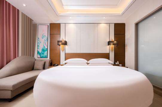 房间设施齐全,服务人员素质高,跟一些快捷商务酒店很不一样。早餐品种丰富,房间设施齐全,床品舒服,总体物超所值,是一次非常满意的体验。门口可停车,还有地下停车场,离万宁多个景点都挺近,大概车程半个小时,离万宁高铁站很近,只有步行几分钟就到了。