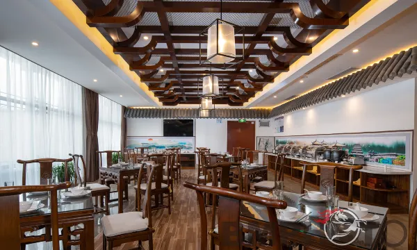 环境:房间很大,中式装修,窗子冲着酒店内部,虽然看不到大运河但是内部的中式装修也不错。