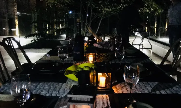 民宿坐落于全国七大丹霞胜地之一的福建泰宁县大龙乡。泰宁是世界地质公园、世界自然遗产。酒店背靠福建第一高峰白石顶,有上千亩原生态茶山环绕,森林覆盖率高,PM2.5低至个位数,是天然的氧吧。