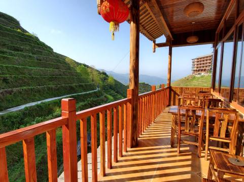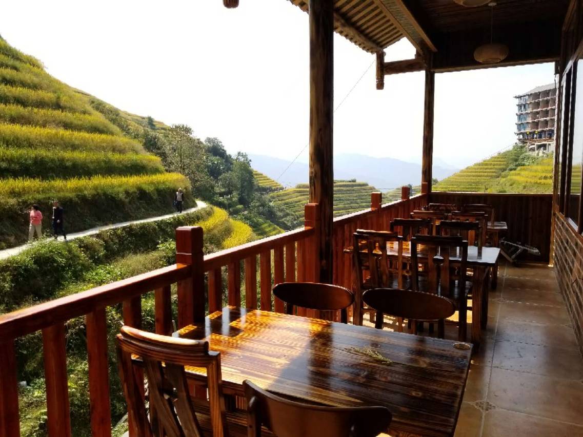 很满意的一次选择。客栈位置理想,梯田就在眼前,坐在阳台上就能欣赏美景,比寨子中的的位置强太多。房间宽敞,装修也不错。客栈本身有餐厅,两菜一汤有荤有素才一百多点,在景区里已经很不错了。老板和老板娘都很热情,会挑最好的房间给安排,还会帮着考虑行程和交通,并会到停车场接送。