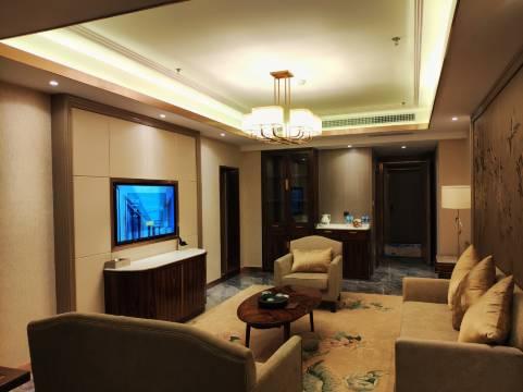 酒店位置优越,周边餐饮超市想有,但春节放假不开门,旁也有河可散步。房间干净,设施齐全,大堂气派,停车方便。