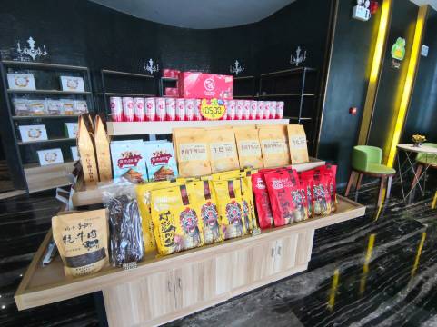 酒店一楼大堂新增有特产区,可购买灵山特产、湖南特产、四川特产、特色茶叶和茶具专区。