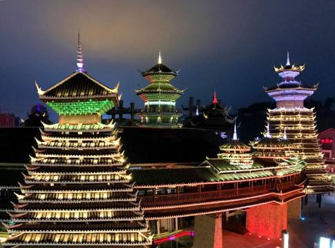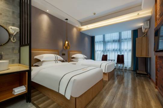 酒店装修渗透贵州民族特色,房间多配有落地飘窗,望外,视野开阔,古市飘香;望里,木床舒适,吊灯温馨。