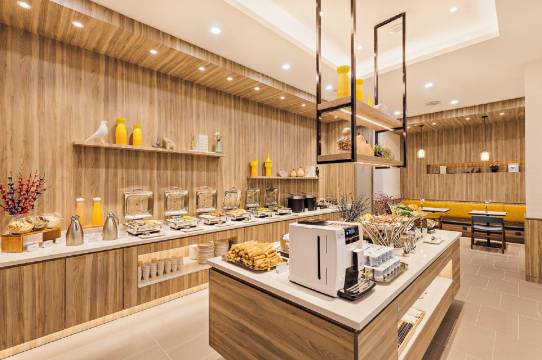 酒店早餐非常不错 前台有咖啡 喜欢 还有服务态度特别好 停车方便