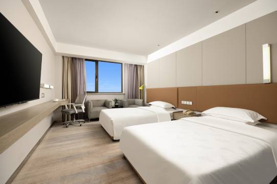 一进门惊艳了网上团的性价比真的很高,交通很方便楼下马路对面就是泰达体育场,可以晚上吃完饭下楼去锻炼一下。房间的卫生收拾的很干净整洁,整体布置的很温馨,酒店服务人员很热情,一到前台各种的茶水点心给送值得推荐一下