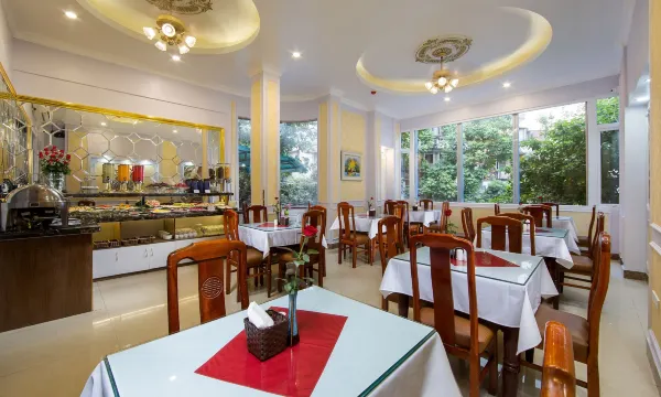 您可以去主打越南菜的Royal餐厅享用美味的午餐;也可以待在房间里,享受 24 小时送餐服务。每日 06:30 至 09:30 提供免费的自助早餐。
