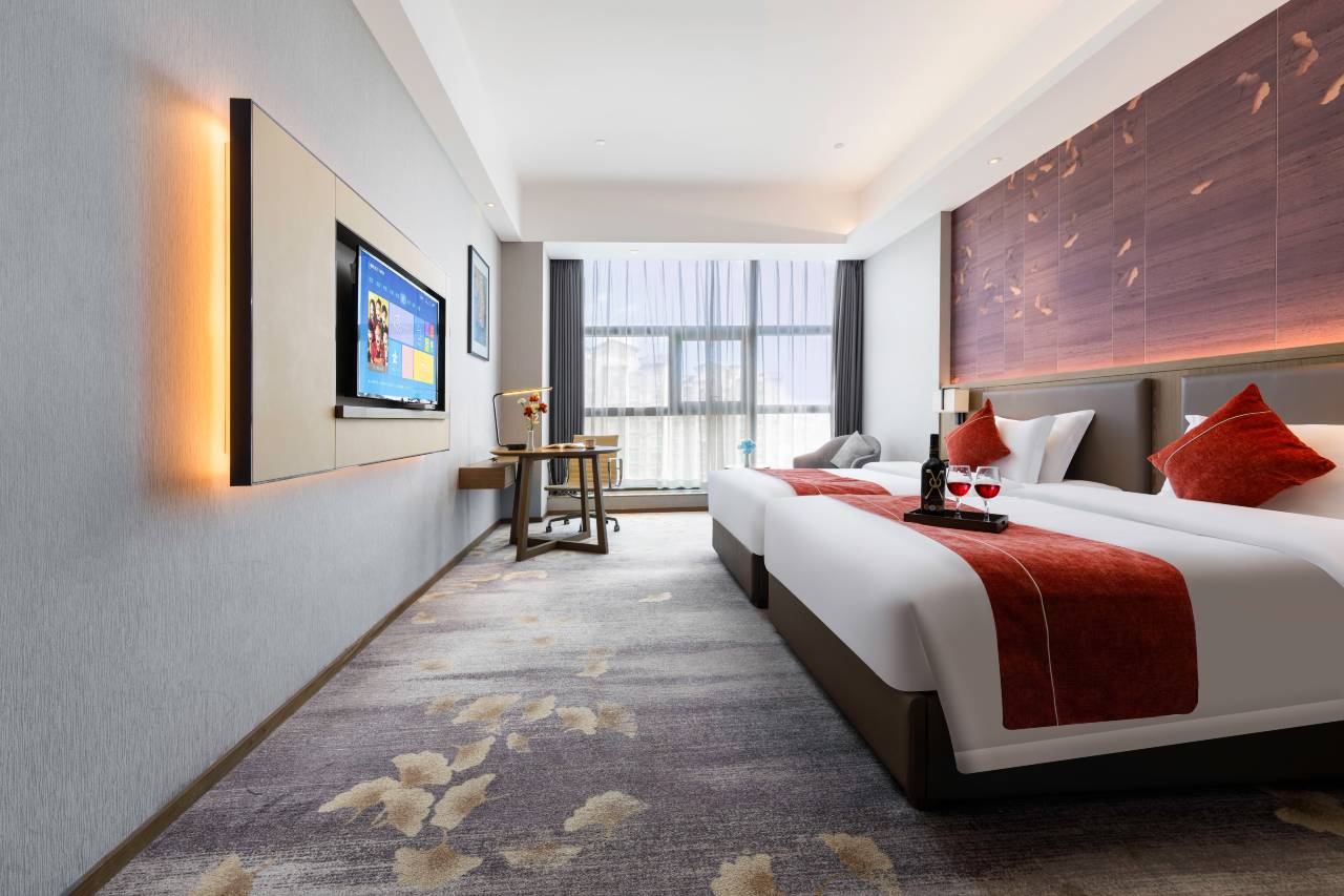 酒店拥有高档舒适的客房,客房配备43寸飞利浦液晶电视,无线网络全面覆盖,让您尽享静谧悠闲的时光。在此入住期间,您可以在酒店顶层德欢自助餐厅享用阳光早餐,开启您美好的一天,亦可在多功能会议厅举办一场商务会议、社交聚会。来到柏栎精选酒店一切交由我们的专业团队和酒店工作人员,我们将确保您在入住期间享受到细致入微的服务体验。