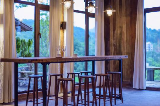 清晨推开窗,云雾如轻纱般漫过黛青色山峦,270°观景露台将流动的云海尽收眼底,仿佛置身仙境。傍晚夕阳西下时,山野被染成金红色,随手一拍都是电影级画面。