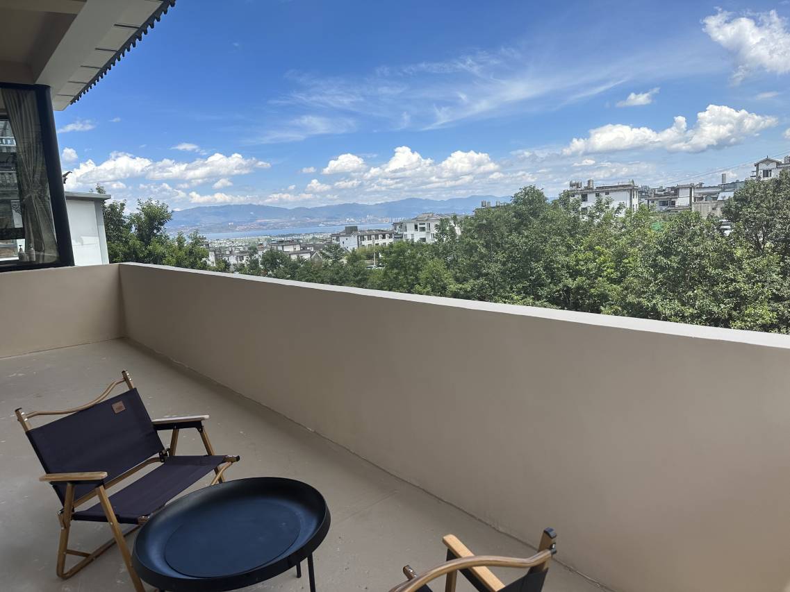 住的山野,房间的阳台也可能看到洱海,坐在阳台上烤烤太阳,看看云,真的很舒服。