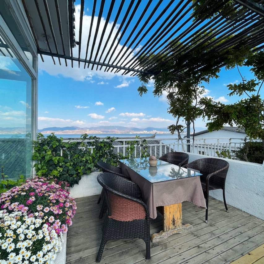 酒店拥有超大公共区域,有茶室、书屋、酒柜、餐厅、灵活会议室,可以泡茶、阅读、聚餐、开会、培训。楼上有洱海边较大的私家花园,四季鲜花盛开,是举办婚礼仪式、婚纱摄影、浪漫求婚的上佳场地。