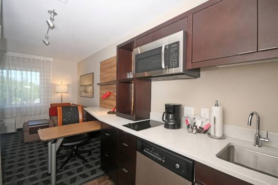 有 102 间客房提供备有大冰箱和炉灶的厨房;您定能在旅途中找到家的舒适。提供 49 英寸液晶电视,且可观看有线频道。便利设施包括电话,以及书桌和独立的起居区。