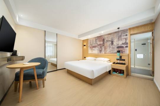 这家店确位置非常便利,性价比高!价格亲民,房间配置齐全——干净整洁,空间够用,基本设施(热水、空调、WiFi)都很给力,WiFi速度快,前台工作人员特别耐心,问了很多当地游玩的问题都一一解答,还帮着规划了路线。周边吃饭、买东西也方便,周边非常安静,出行很方便,早餐厅在1楼,菜品种类丰富,这个价位带有早餐是真的值了,推荐!