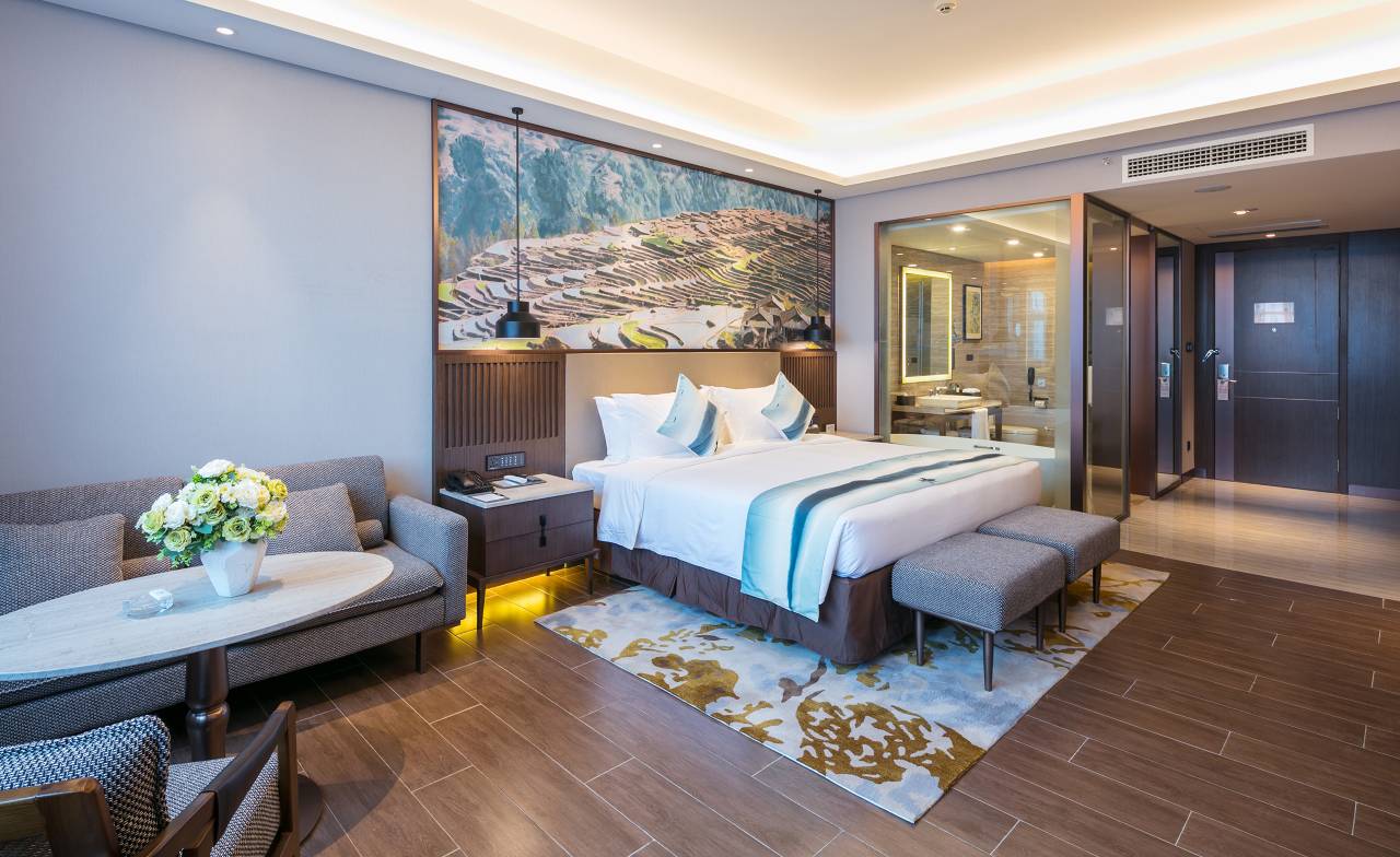 超棒带父母出行,预订了高级大床房。前台经理主动识别到我们是家庭游客,免费为我们升级到了房型,前台服务非常温和,父母非常开心。房间的隔音很好。卫生间干湿分离做得很到位,地漏排水快,没有异味。特别是客房服务很快,美中不足的是酒店门口的出租车不太容易打到,建议使用网约车。
