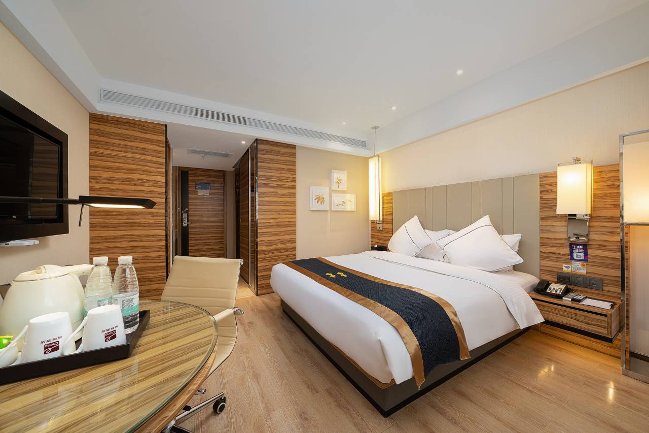 酒店位于钦州市钦北区永福西大街35-37号,离钦州高铁东站驾车约5分钟,离三娘湾旅游景区30分钟车程。酒店周边:万国商业广场、仟仟万家购物广场、小吃街等,地理位置十分优越; 酒店客房100间,配有自助洗衣房、自助早餐厅、中小会议厅等设施设备,酒店房间提供高速光钎上网,全区域wifi覆盖,24小时热水等设施,酒店客房清静整洁,大堂风格时尚简约,清新明亮,舒适优雅洁净明亮的高级/豪华/花园客房让您拥有梦幻般的睡眠质量,竭尽所能为您提供一个舒适及个性化的住宿环境,让您拥有回家的感觉,是您可靠的选择 ——“家外之家 可靠之选”。我们诚挚期待您的光临!