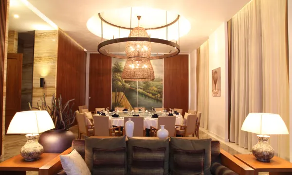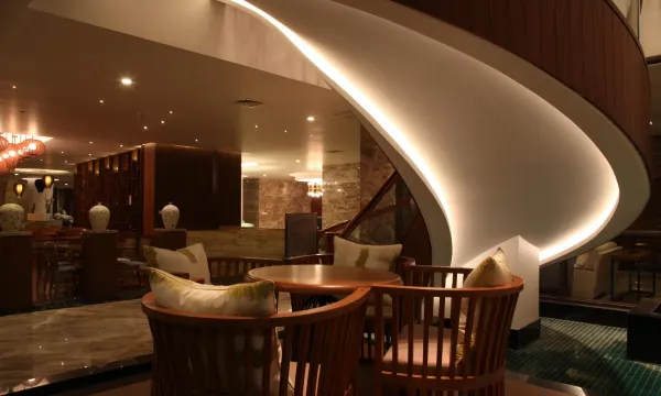 这里有敞开式自助餐厅,可以在露台上边品尝纯正粤菜边欣赏美景,会议室里配有先进的视听设备。闲暇时,还可以去棋牌、影视、茶社等区域放松身心。