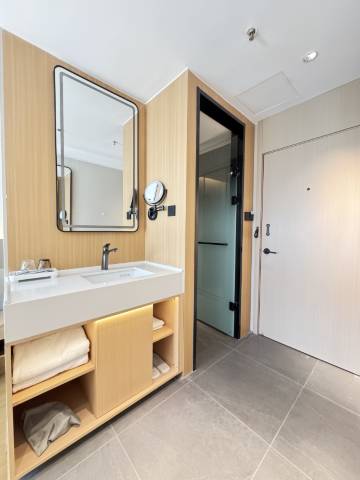 酒店的卫生状况绝对满分,每个角落都打扫得十分千净,没有一丝异味。床特别舒服,让旅途疲惫的我一夜好眠。设施很新,智能马桶、高速