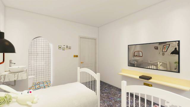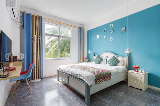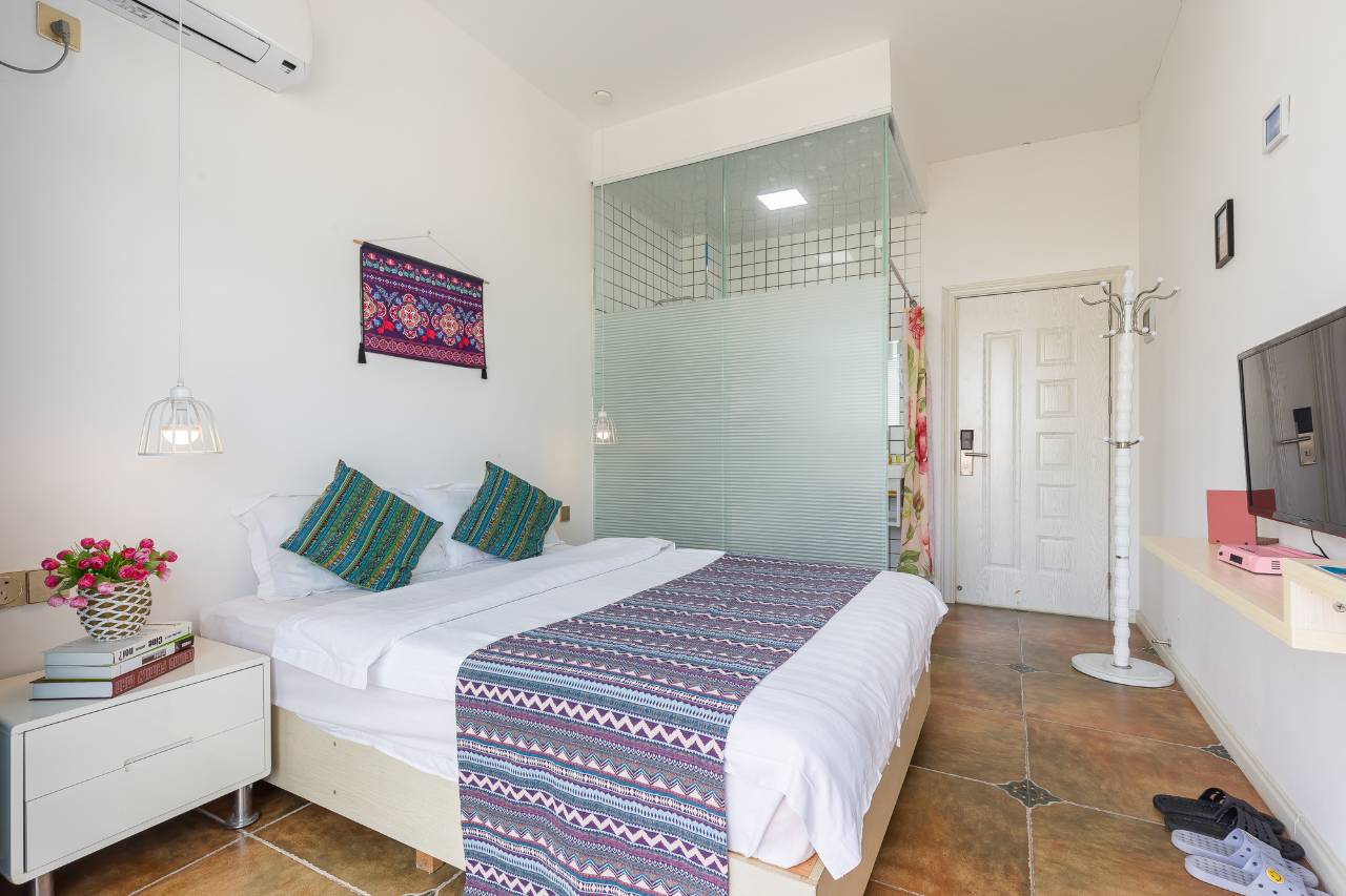 民宿装修基本小清新风。配备的家具布草均为高档品牌。每间客房均配备洗手间(开放式),淋雨,手盆。16间客房均有超大阳台。配备停车场。