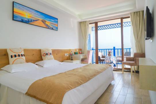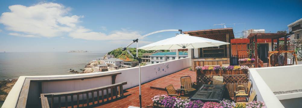 蔚蓝海景民宿位于东极主岛庙子湖岛,观光车可直达民宿,民宿拥有房型为全海景房,配备一个公共海景露台,多个房间配备海景私人露台,离海平面只有10米,在海景露台上小憩,品着红酒,听着海哭的声音,很是惬意!闲时看夕阳美景,云卷云舒,优享碧海蓝天,清风明月!