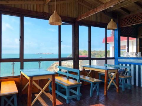 蔚蓝海景民宿直面无垠大海,欣赏夕阳之美,尽揽海景,步行约5分钟即可到夕阳观赏点和鱼港码头以及历史古街,民宿楼上网红打卡点与大海亲密合照,拥有海景音乐餐吧和海景音乐小酒吧,可以一边享受美食和美酒,一边观赏大海!