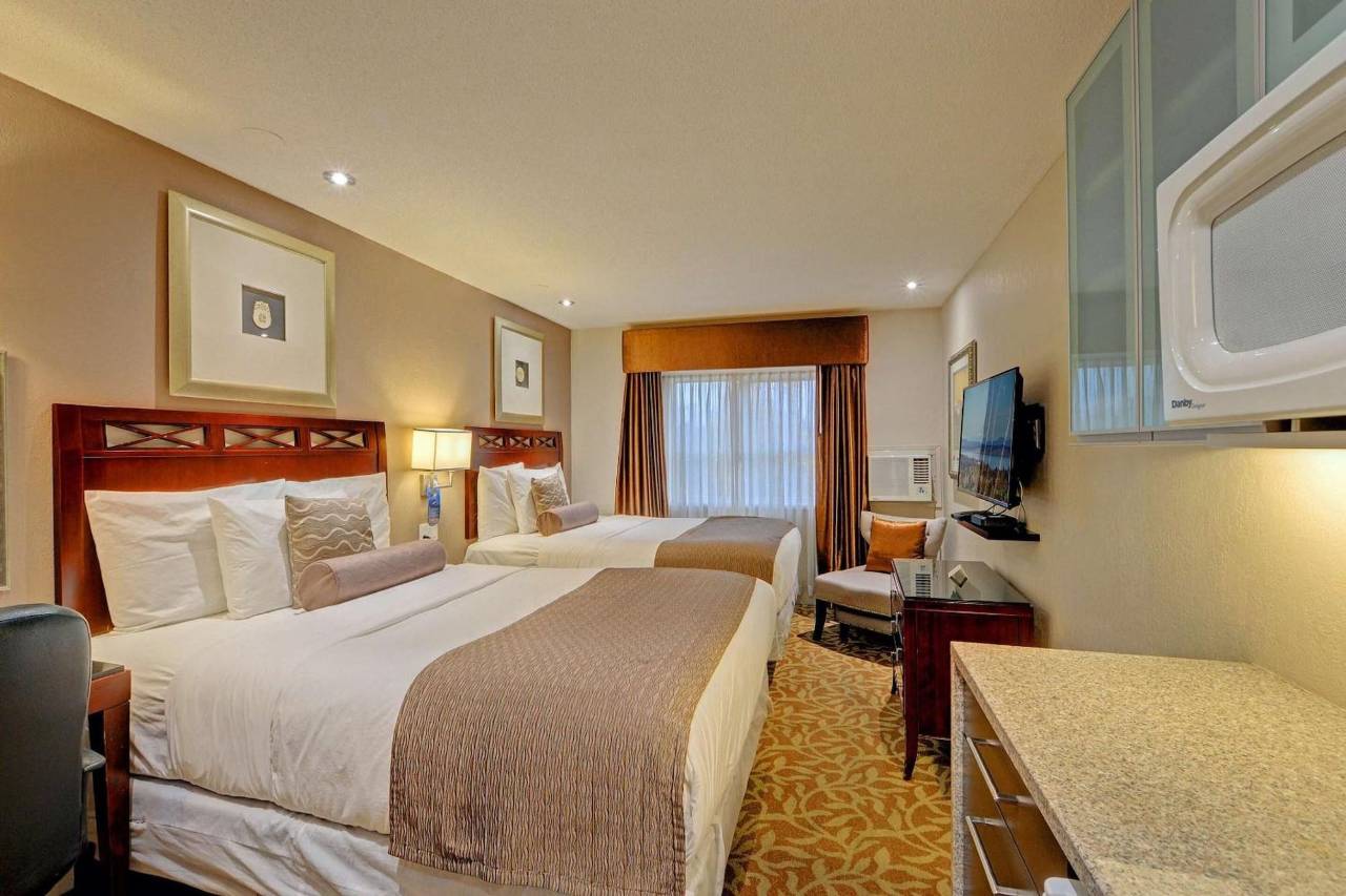 朋友推荐的酒店,非常不错的住宿体验。酒店干净卫生,房间隔音效果好。服务周到,前台工作人员特别热情友善。酒店设施齐全,配备小厨房。附近有沃尔玛超市、中餐厅、快餐店。交通便利,距离公交站不到百米,可直达downtown、Swartz Bay (Victoria) BC Ferry Terminal等。下次去还会选择这家酒店。