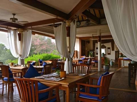 早餐是单点式的——每人可以选择几道菜。我推荐阿尔玛里克鸡蛋,其他菜品也都很不错,自助餐台上还有各种水果和糕点。小木屋本身也很棒,干净宽敞。这是我在巴厘岛及周边岛屿住过的最棒的酒店。