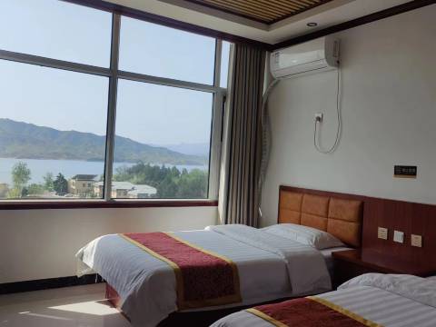 入住此酒店非常满意,是一家有温度的酒店,服务态度很好给人一种回家的感觉特温馨还送了小礼品。他家有自己的餐厅饭菜可口,有野生鱼,虾,山野菜都挺好的,房间里边设施设备挺齐全的房间里边有空调可以上网、洗澡都方便。再次就在景区边上步行不到五分钟的路程就到旧址了,门口停车也方便,旁边不到一百米还有一个水库有山有水风景漂亮,是值得推荐的一家酒店