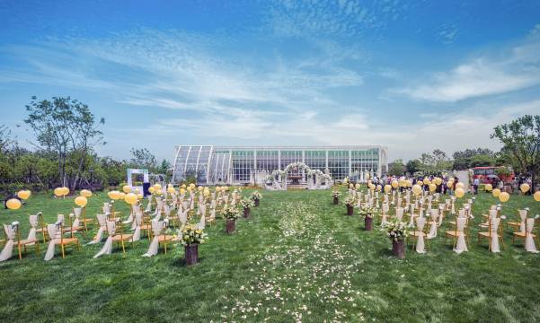 酒店的核心区域拥有水上婚礼礼堂;10000m²婚礼草坪花园和1100㎡和860㎡豪华无柱宴会厅、超大LED大屏、专业音响设备及豪华舞美灯光,可同时容纳2000人就餐,主要承接公司年会、大型会议、婚礼宴请;为宾客打造特色唯美婚礼场景,尚田小镇将成为华东地区旅游度假式婚礼的赏佳去处。