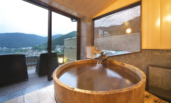 房间很大可以看到富士山。温泉超级舒服,顶楼还有私汤景色也不错。位置离车站不远步行10分钟以内,对面就是湖。