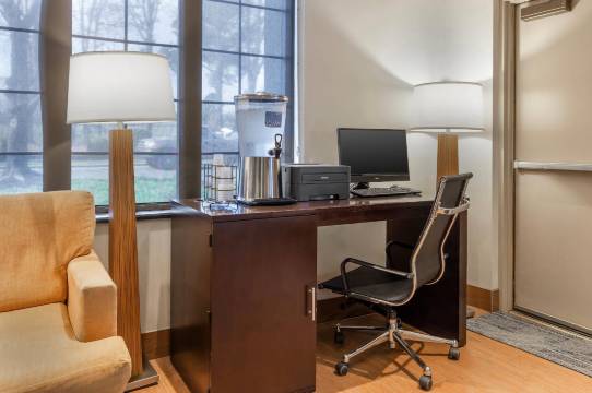 有 115 间客房提供冰箱和微波炉;您定能在旅途中找到家的舒适。带有数码频道的 36 英寸液晶电视可满足您的娱乐需求;同时提供免费无线网络,方便您与朋友保持联系。配备淋浴设施的私人浴室提供免费洗浴用品和吹风机。便利设施包括书桌和免费报纸(周一至周五),以及带有免费市内通话的电话。