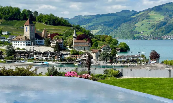 瑞士行最满意的酒店,没有之一!连住三晚,酒店给升级了房型,270度山光水色尽收眼底。每天都在梦幻般的美景中徜徉。施皮茨离因特拉肯等周边小镇火车20多分钟,方便快捷,关键是静谧原生态。没有喧嚣的客流,唯有花开有色,游艇无声,美不胜收。酒店开窗就是无敌湖景,坐在阳台看云卷云舒,光影变幻,静静的不说话就很美好。房间设施很全,干湿分离,拖鞋咖啡机都有,离火车站10多分钟,要是能接送站就更好了。住在这样的小镇能充分感受瑞士的仙境之美。