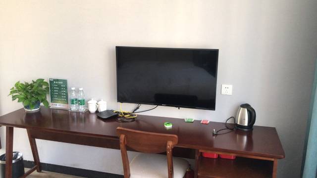 房间挺干净的,该有的设备都有了,就是遥控器没换过电池。对得起价钱。