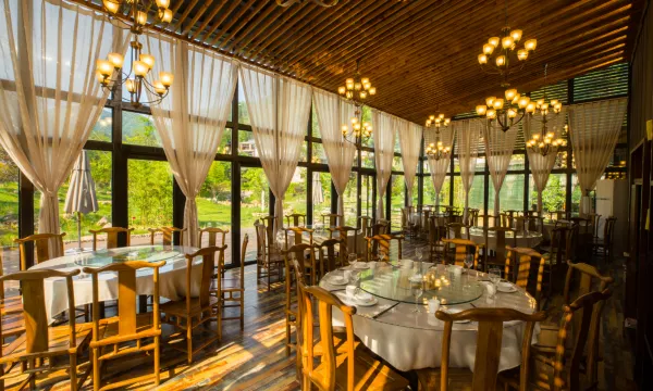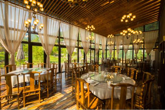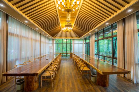 浦江泊隐·柳秀轻奢度假民宿全配根雕茶几及紫砂茶具,洗漱用品为法国进口。配套餐饮、书苑、溪流泳区、垂钓、酒吧、果园、菜园、会议室。
