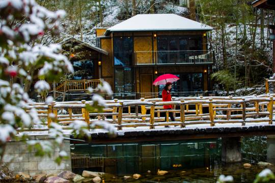 浦江泊隐·柳秀轻奢度假民宿地处浙江金华浦江县,傍依4A级仙华山旅游度假景区。每个房间各具特色,有古建筑客房(全部采用古沉船木装饰),也有单栋别墅,别墅为智能语音控制全景观房。