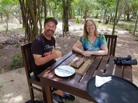 真正的森林小屋,每间都是单独的一栋,私密空间充足,酒店总共就5间房,直接坐落在森林里,风景很美。鸟儿,蜥蜴,变色龙,随时偶遇,原生态的环境。酒店就在国家公园里,入住需要酒店的人开越野车来接,去safari只需要半小时就到公园门口。喜欢大自然又不能接受露营的首选,对设施有要求的不推荐。小瑕疵是淋浴水比较小,设施都比较旧。早餐很丰富,做的很用心。